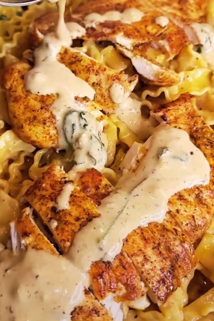 What I love most about it is how the creamy, tangy sauce clings to each strand of pasta, delivering a perfect bite every time. The contrasting textures—tender pasta, silky spinach, creamy sauce, and crunchy pine nuts—create a multi-dimensional dish that’s far greater than the sum of its parts.