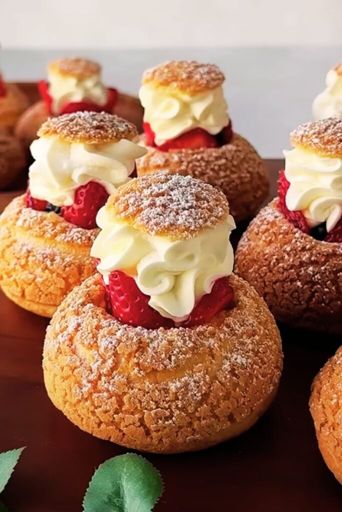 Choux Pastry (Pâte à Choux) : A light pastry dough that puffs up dramatically when baked, creating hollow shells perfect for filling. The magic happens when water in the dough turns to steam, creating the characteristic airy texture.
