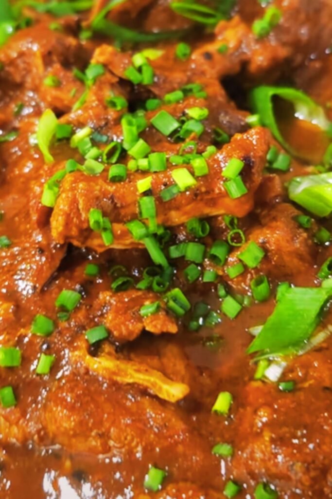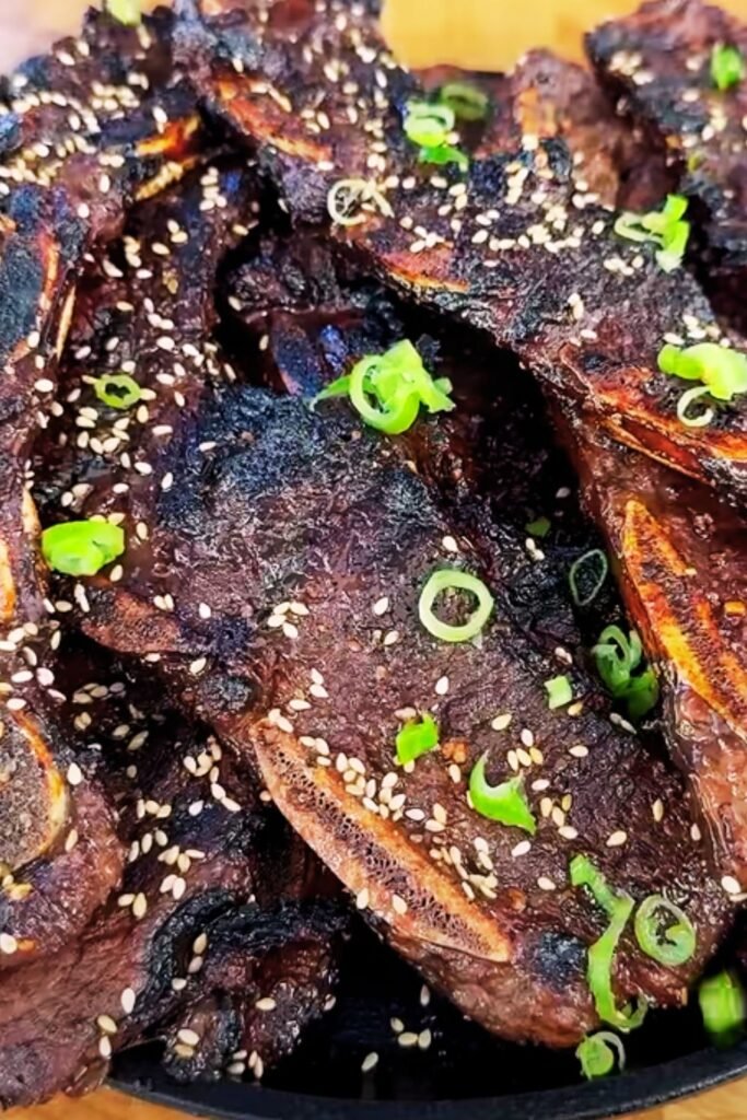 - Finish the Dish: Transfer the meat to a cutting board and slice against the grain. Arrange the sliced meat on a serving platter with the cooked vegetables around it. Spoon the rich sauce over the meat and vegetables. Garnish with sliced green onions and a sprinkle of sesame seeds.